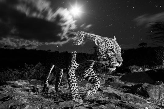 Precisamente fue gracias a uno de esos artilugios por los que consiguió la imagen. “Durante un año en el condado de Laikipia en Kenia monté multitud de cámaras trampa Camptrations que iba rotando y moviendo a medida que iba aprendiendo más sobre el comportamiento del leopardo”, cuenta. “Una de las imágenes más difíciles que intenté fue exponer un leopardo por la noche con las estrellas en el cielo”, explica. Y ha sido precisamente esa la que le ha valido ambos premios.