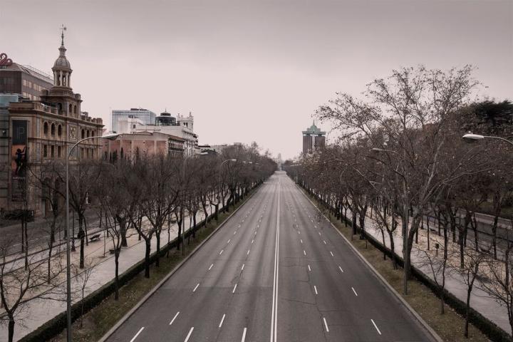 Es muy probable que estos días te haya llegado por WhatsApp una colección de fotos de las calles de Madrid vacías. Nadie en la Puerta del Sol, nadie en la Gran Vía, nadie en la plaza Mayor, nadie en el paseo de la Castellana... Con toda España confinada por el estado de alarma decretado el pasado 14 de marzo para detener el avance del coronavirus, no sería de extrañar que la capital se mostrase con ese aspecto.