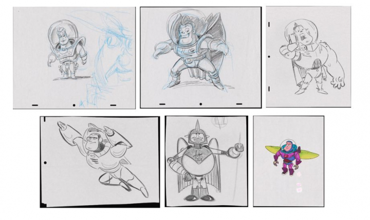 La cara, las alas del traje y hasta los colores de éste eran diferentes cuando se concibió el personaje. También su nombre. “Se barajaron varios, desde Tempus of Morph, Lunar Larry hasta Buzz Lightyear. Incluso se puede apreciar las iniciales LL por Lunar Larry en el cinturón en uno de los bocetos”, ha explicado la historiadora de Pixar Christine Freeman.