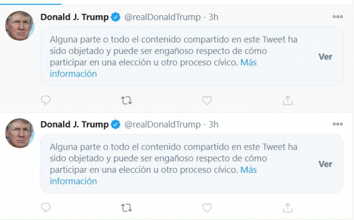 The Washington Post, The New York Times y Los Ángeles Times también desmintieron al presidente. Y hasta Twitter, que no da abasto con poner mensajes de advertencia en cada tuit que publica Trump. Así está ahora mismo el timeline del presidente.