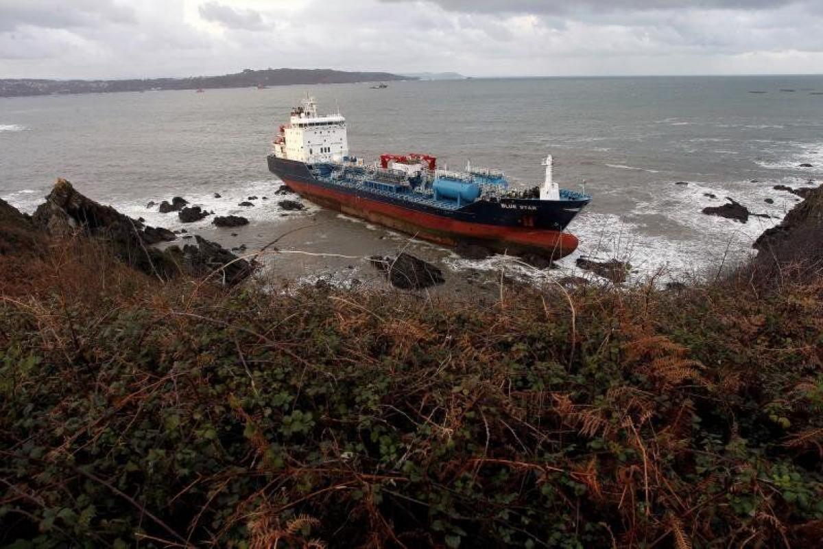 A la segunda tampoco fue la vencida. El buque ‘Blue Star’, con bandera de Malta y de 128 metros de eslora, continúa encallado en la costa del municipio de Ares, en las proximidades de Punta Miranda, después de que las estachas que unían al quimiquero con el remolcador ‘Don Inda’, de Salvamento Marítimo, se rompieran cuando este último comenzó a tirar.