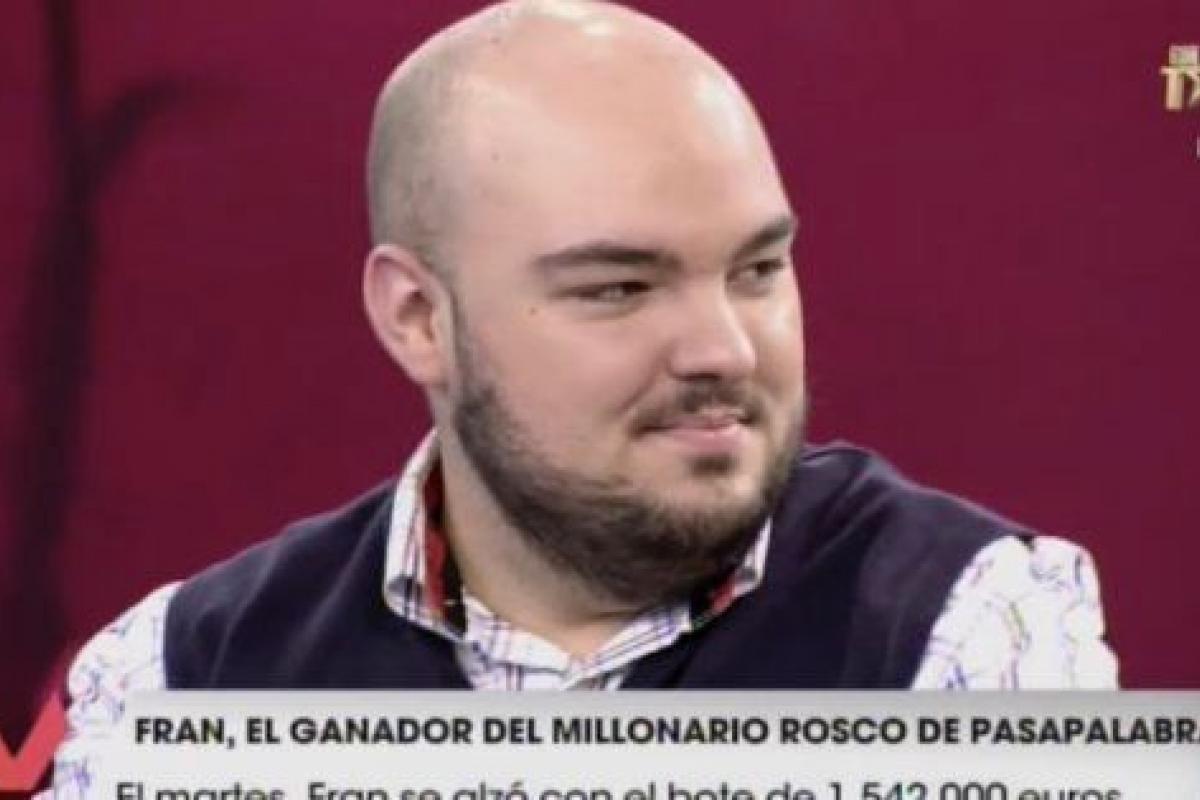 Fran González, que completó el pasado martes el rosco de Pasapalabra y se alzó con los 1.542.000 euros del bote, ha estado este sábado en Viva la vida (Telecinco).