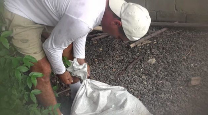 El presentador de DMax la coge con las manos y la introduce en un saco para llevársela en coche a un centro de rehabilitación de animales.