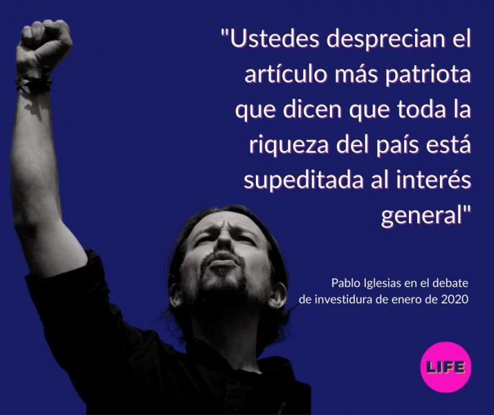 Frase de Pablo Iglesias en el debate de investidura de Pedro Sánchez en enero de 2020.Getty Images