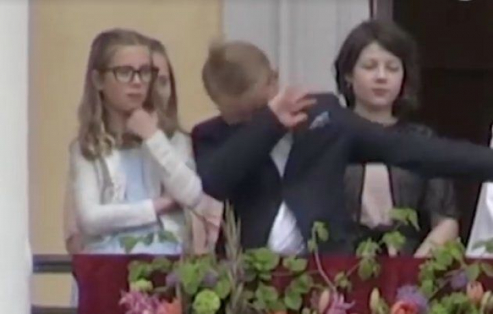 El pequeño Sverre, de 11 años, quiso amenizar el saludo de toda la Familia Real en el balcón del Palacio haciendo un dab, el pase de baile que tanto se ha popularizado en los últimos años.