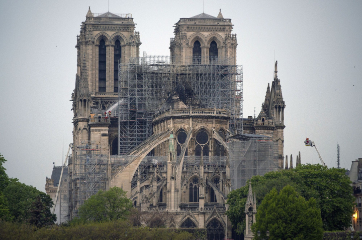 Alrededor de una sesentena de bomberos continúan desplegados en la catedral en esta fase de vigilancia, en la que expertos ya han comenzado a evaluar los daños y, sobre todo cuáles son los riesgos de que haya un derrumbamiento o de que el fuego rebrote en algún sitio.