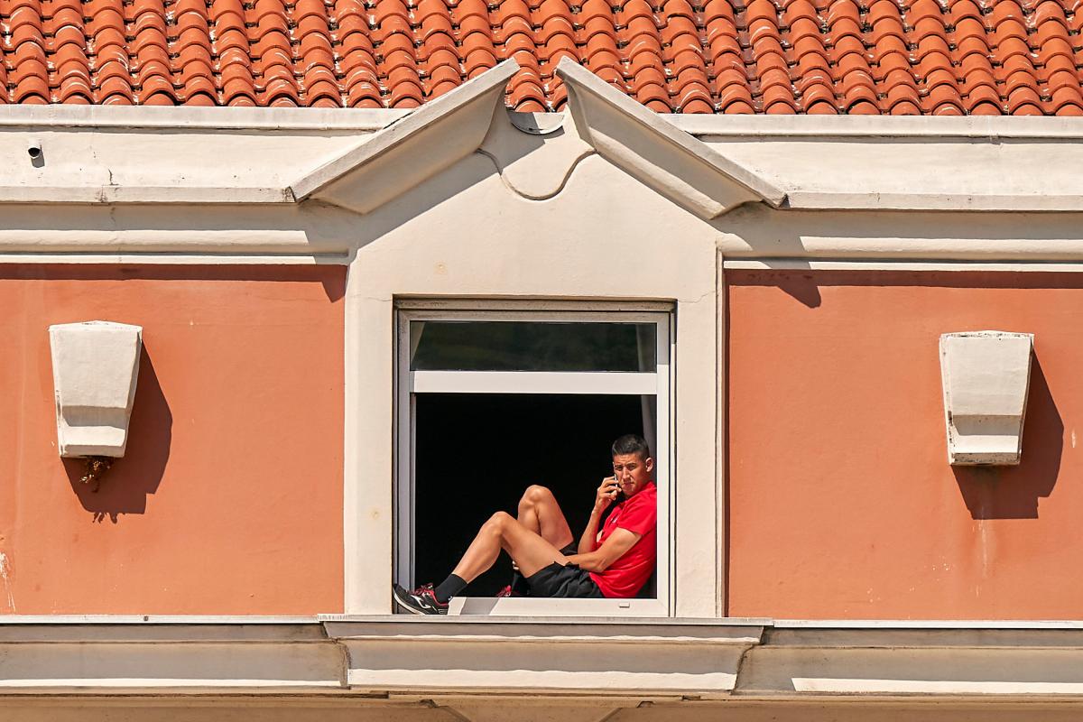 Un jugador del Fuenlabrada, en el Hotel de A Coruña donde se encuentran aislados.Quality Sport Images via Getty Images