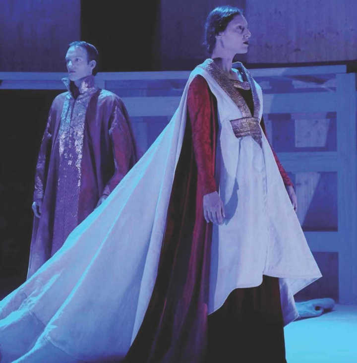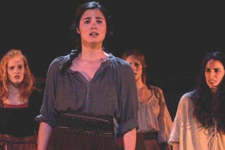 Como hemos indicado en otra entrada de este mismo blog, Fuenteovejuna es una de las obras más complejas de poner escena para un público contemporáneo. Su mensaje, muy maniqueo, presenta la unión entre el pueblo y la monarquía en contra de la alta nobleza, los anteriores señores feudales. La obra original presenta un mundo en blanco y negro, con buenos y malos, y, hasta ahora, todos los adaptadores han seguido esta doctrina: bien enalteciendo el papel del pueblo en la revolución (como en las versiones de La Barraca, y las de la Rusia soviética), bien destacando todavía más la figura de los reyes católicos como restauradores del orden natural. No obstante, la versión de la Joven CNTC prefiere explotar los pocos grises que tiene esta obra para presentar una sociedad que no era utópica antes de los desmanes del comendador y que tampoco lo es tras su muerte. Alberto Conejero, el magnífico autor de La piedra oscura y Javier Hernández Simón, adaptador y director respectivamente, se aseguran de que nadie quede dispuesto como héroe. La figuración de los monarcas presenta a los Reyes Católicos como si de dos espectros se tratara, con una caracterización casi cercana a la de películas de vampiros. El pesquisidor real llega, incluso, a utilizar el manto de Isabel la Católica como instrumento de tortura.