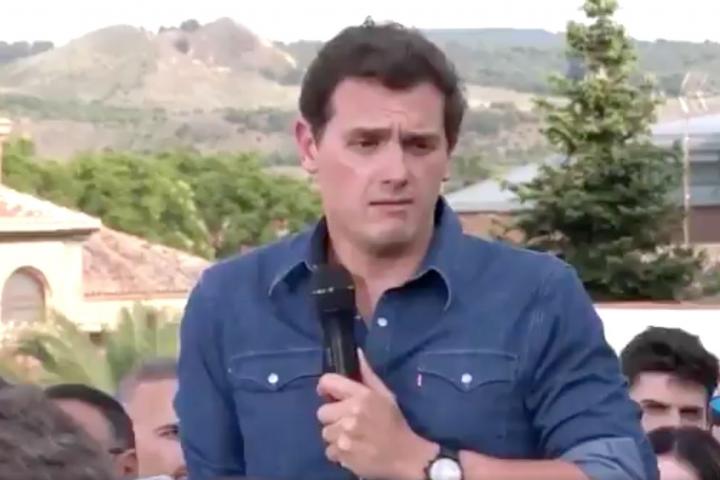 Aproximadamente a las doce y cuarto del mediodia, Rivera ha llegado al frontón donde se va a celebrar el acto de Ciudadanos y, en ese momento, ha empezado a sonar una sirena a gran volumen desde un primer piso. En las viviendas de las inmediaciones se pueden ver lazos amarillos y un cartel en el que se puede leer “no queremos a los herederos de Franco en nuestro pueblo”.