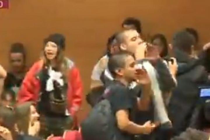 Escrache contra Pablo Iglesias en la universidadRTVE