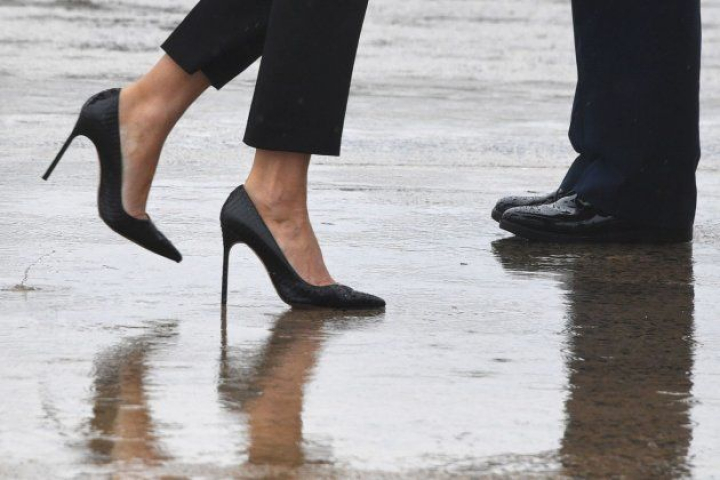 Con unos tacones de 10 centímetros de altura. Así se ha presentado la primera dama estadounidense, Melania Trump, para ir junto a su marido a visitar los daños del huracán Harvey.