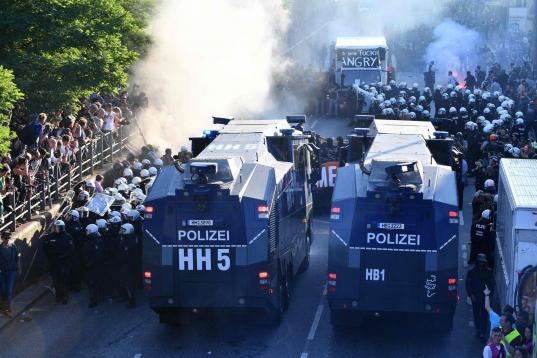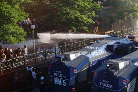 La policía alemana ha hecho uso este jueves de cañones de agua a presión para dispersar a grupos de manifestantes identificados como violentos que se mezclaron con una marcha convocada por la izquierda radical contra la celebración de la cumbre del G20 en Hamburgo, que se abre formalmente este viernes.