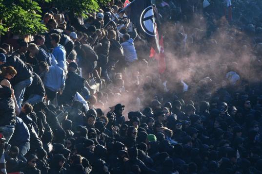 Los antidisturbios, presentes en el lugar de la concentración y a lo largo de todo el recorrido previsto con un fuerte contingente, detuvieron la marcha poco después de su arranque, al detectar entre los manifestantes a cerca de un millar de encapuchados, informaron fuentes policiales.