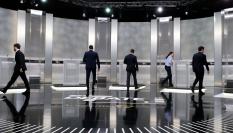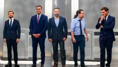 The five main candidates for Spain's prime minister, (L to R) conservative People's Party (PP) leader Pablo Casado, Spanish prime minister and Spanish Socialist Party (PSOE) leader, Pedro Sanchez, far-right wing Vox party leader, Santiago Abasca...
