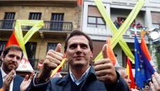 El líder de Ciudadanos y candidato a la Presidencia del Gobierno, Albert Rivera, ofreció un mitin este domingo en Errenteria en un ambiente de gran tensión, rodeado por cientos de personas que protestaban contra la presencia de la formación naranja en esta localidad guipuzcoana. Entre insultos y abucheos, les dijo: “Euskadi no es vuestro, es de todos los vascos y todos los españoles. Por eso estamos aquí”.