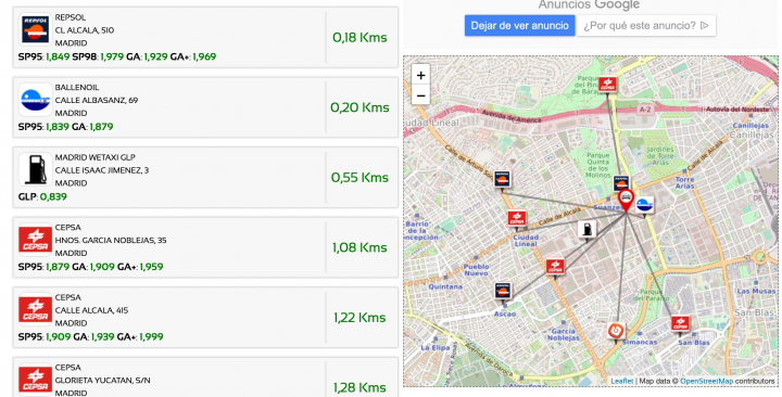 Muchos usuarios optan por consultar esta información en la web Diesel o Gasolina, que dispone de un buscador. Basta con teclear una dirección y muestra en un mapa y en un listado las estaciones de servicio más cercanas, con los precios de cada una y la distancia hasta ellas.