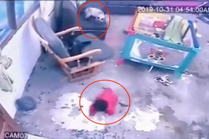 Hasta ese punto, la escena no parece tener mucho sentido ni se entiende muy bien por qué el gato hace eso. Pero con el plano final todo cobra un sentido enorme: el bebé se estaba dirigiendo hacia unas escaleras.