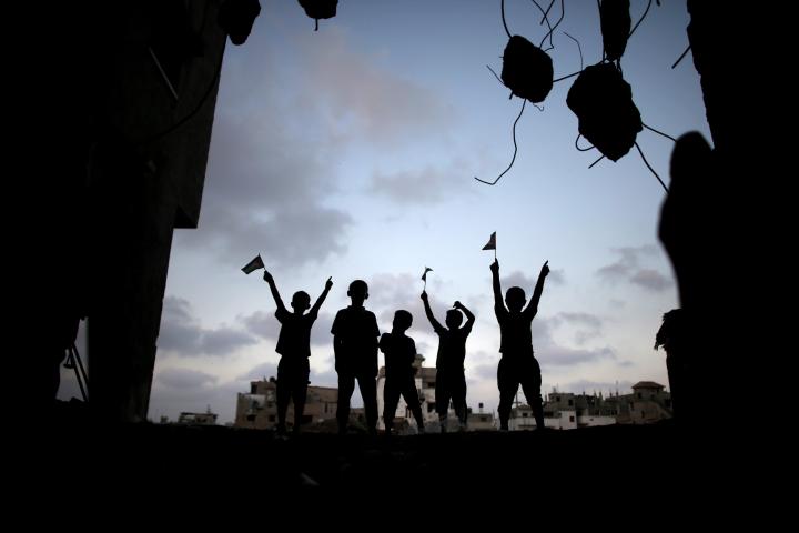 Unos niños juegan en un momento de tregua entre las ruinas de unas casas en el barrio de Shejaiya, en Gaza, el 17 de agosto de 2014. THOMAS COEX / AFP / Getty Images