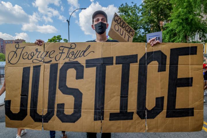 Un manifestante con una pancarta pidiendo justicia para George Floyd el 4 de julio de 2020 en Nueva York (Erik McGregor/LightRocket via Getty Images).Erik McGregor via Getty Images