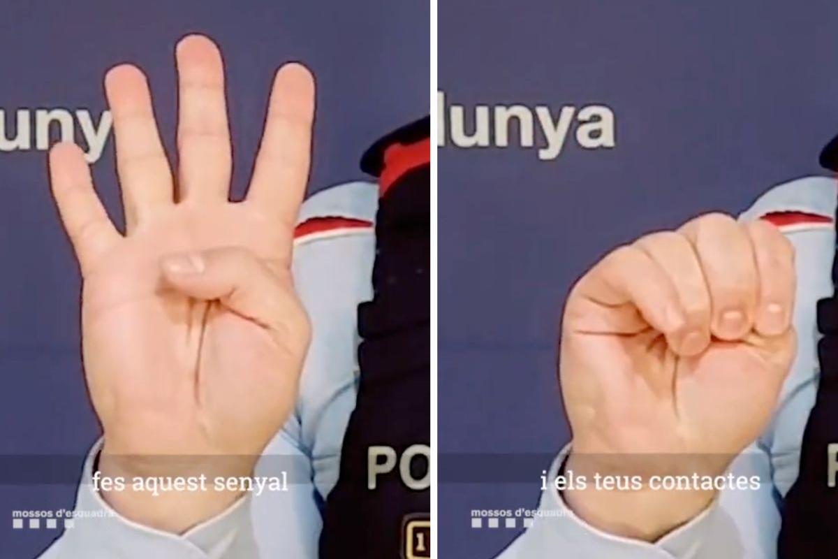 Un Mosso explica el gesto para pedir auxilio.MOSSOS