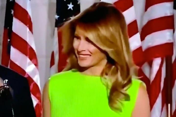 Otro de los detalles a los que se está sacando punta es al vestido de Melania, un diseño en verde lima al parecer de Valentino, pero que para muchos internautas fue un croma ideal en el que superponer otras imágenes.