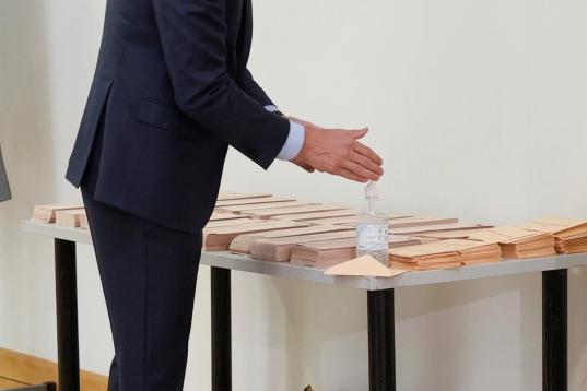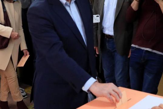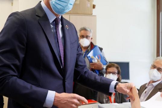 El presidente del Gobierno, Pedro Sánchez, depositando su papeleta.