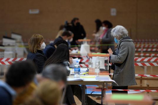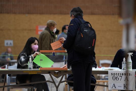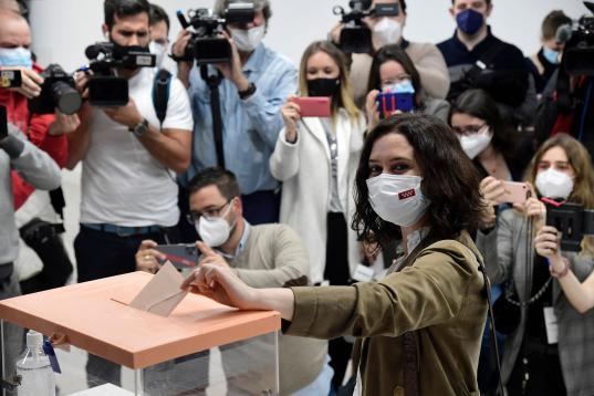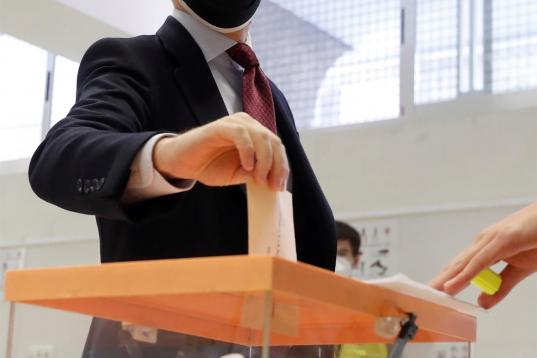 La presidenta Isabel Díaz Ayuso emite su voto.
