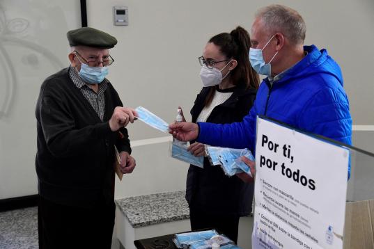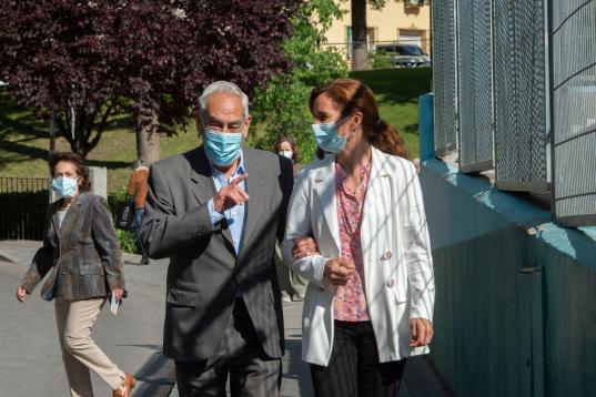 La candidata de Más Madrid, Mónica García, acompaña a su padre para ir a votar. Ella ya lo ha hecho por correo.