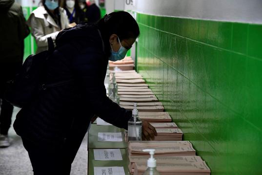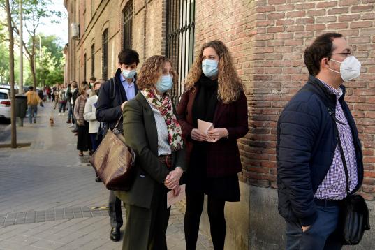 Colas frente a los colegios electorales para ir a votar por la mañana.