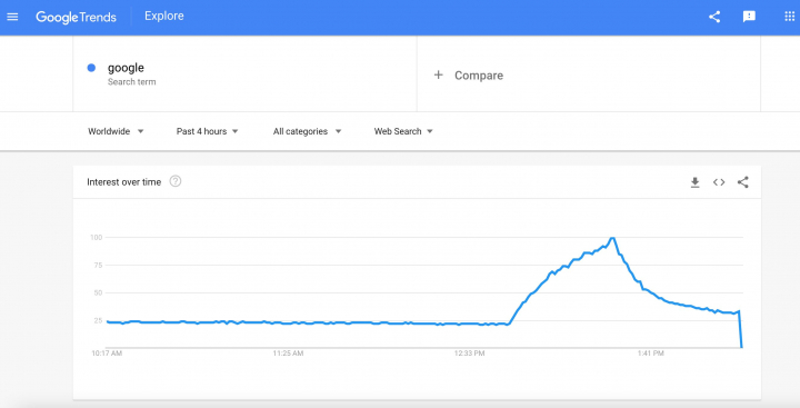 Minutos antes de las 13:00 algunos servicios como el correo electrónico Gmail o la plataforma de vídeo YouTube, no permitían el acceso a sus usuarios o no se actualizaban. Tres cuartos de hora después, algunos comenzaron a poder utilizar de nuevo algunos de ellos, pero los problemas persistían para muchos.