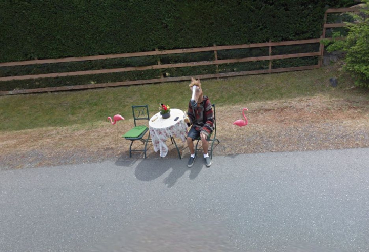 La empresa ha compartido en su cuenta oficial un mapa en el que, si se amplia varias veces y se acaba entrando en Google Street View, se puede ver a una persona sentada en una silla con una careta de caballo y comiéndose un plátano.
