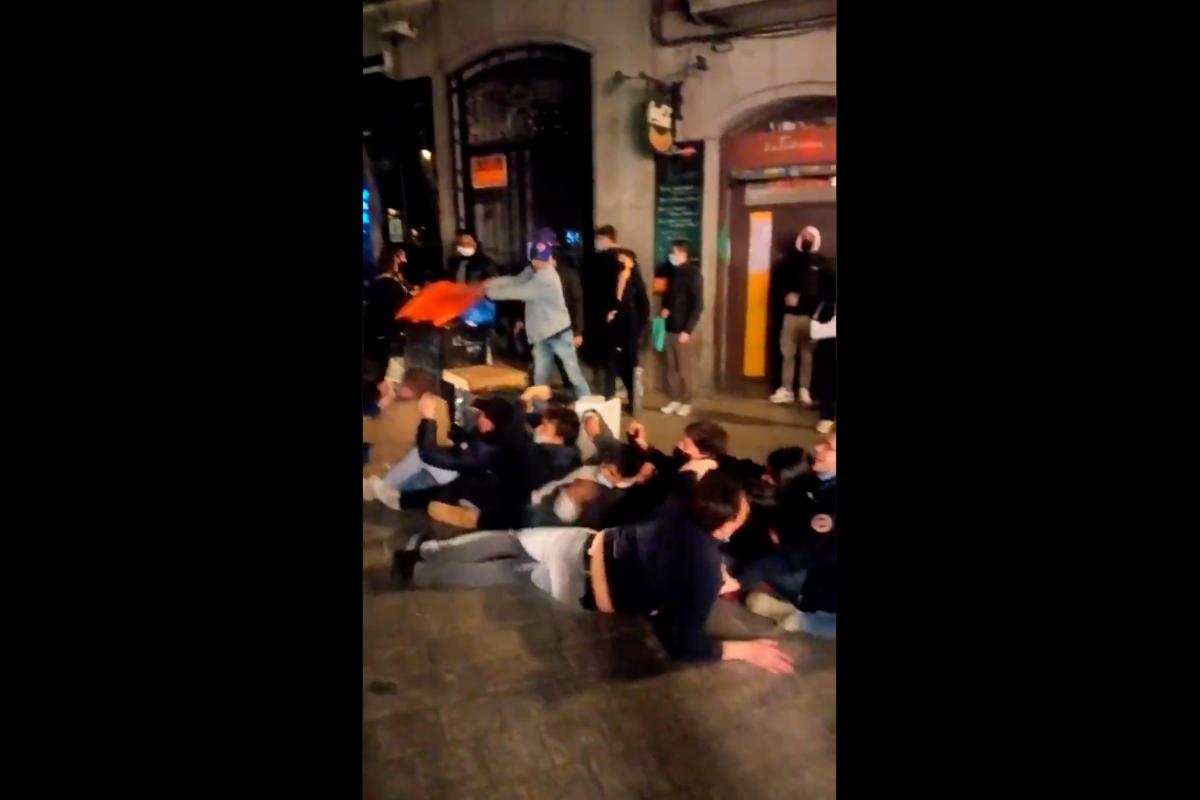 Las imágenes han sido grabadas, dice la emisora, en la noche del jueves, en la calle Espoz y Mina, una pequeña vía semipeatonal en el centro de Madrid, cerca de la popular Puerta del Sol, llena de bares y pubs nocturnos abiertos hasta las 11 de la noche, hora del toque de queda.
