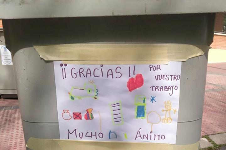 Y en este escenario de estado de alarma y confinamiento, lo que más agradecen Ledesma y sus compañeros son las ráfagas de solidaridad, no sólo en los mensajes que niños y adultos depositan sobre las tapas de los cubos, y que recogen y guardan con un agradecimiento infinito.