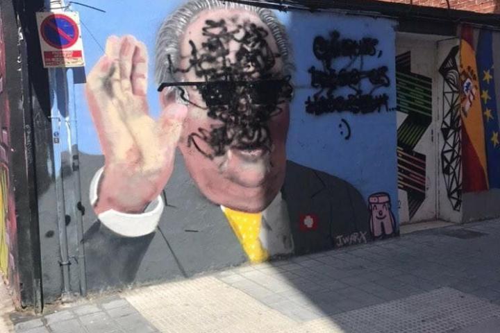 El grafitero J. Warx arregla su dibujo de Juan Carlos I boicoteado hace una semana: así está ahora