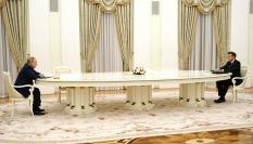 Ha sido un elemento clave en las negociaciones diplomáticas al más alto nivel para tratar de frenar el conflicto abierto con Rusia por la crisis de Ucrania. También se ha convertido en un motor inagotable de memes en las redes sociales. Se trata de la gigantesca mesa a la que se sentaron los mandatarios ruso y francés, Vladimir Putin y Emmanuel Macron, en las conversaciones para lograr una desescalada y rebajar la tensión.