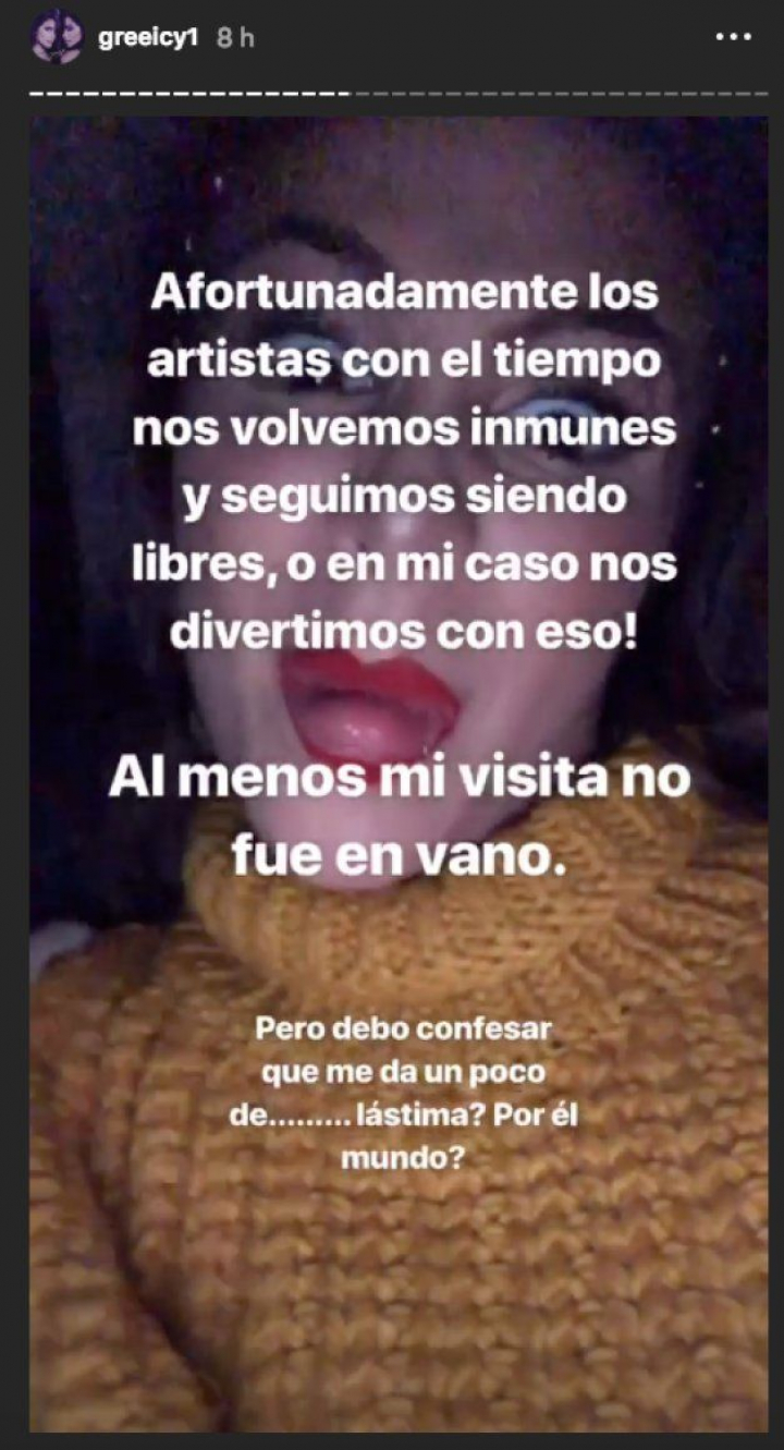 "Afortunadamente los artistas con el tiempo nos volvemos inmunes y seguimos siendo libres, o en mi caso nos divertimos con eso! Al menos mi visita no fue en vano. Pero debo confesa que me da un poco de... lástima? Por el mundo?", continuó.
