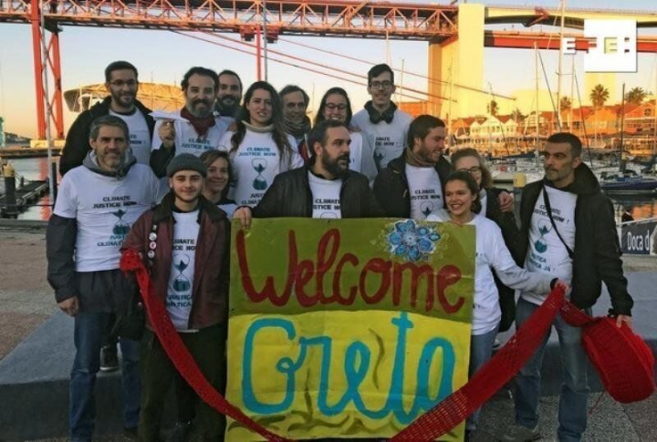 En el puerto de Santo Amaro, numerosos simpatizantes y autoridades la esperaban como agua de mayo, justo antes de que emprenda camino hacia Madrid, donde tiene previsto participar en la Cumbre del Clima (COP 25). Ha llegado unas cuatro horas tarde sobre el programa previsto.