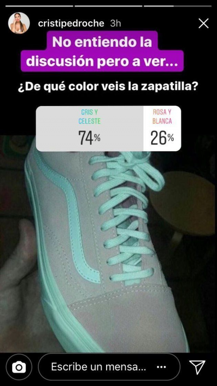 En esta ocasión, se trata de una zapatilla que algunos ven rosa y blanca y otros, gris y celeste.
