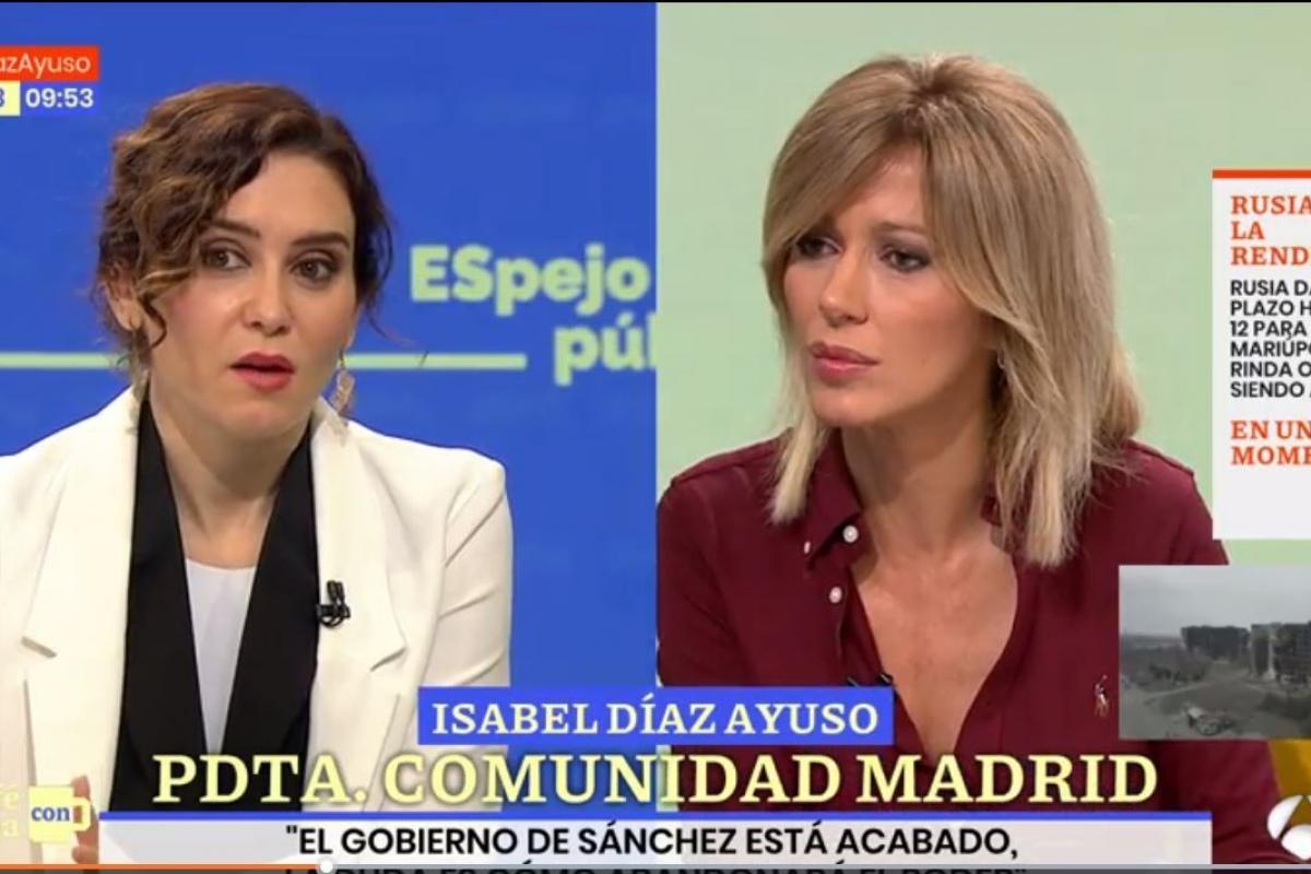 Una escena protagonizada por la presidenta de la Comunidad de Madrid, Isabel Díaz Ayuso, durante la entrevista que Susanna Griso le ha hecho en Espejo Público está dando dando mucho de qué hablar en Twitter, donde en apenas un día supera los 3.000 retuits y los 13.000 ‘me gusta’.