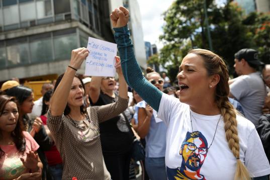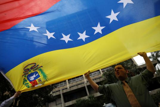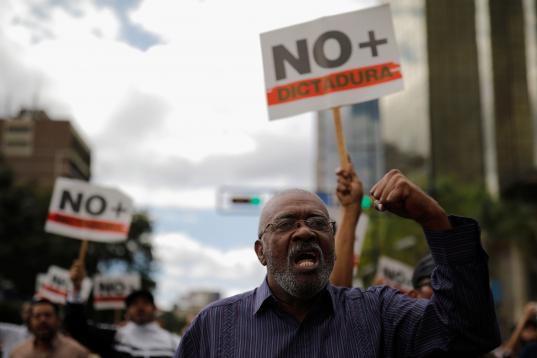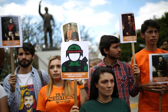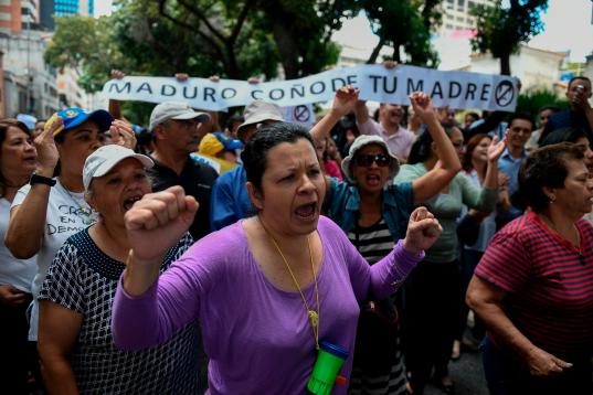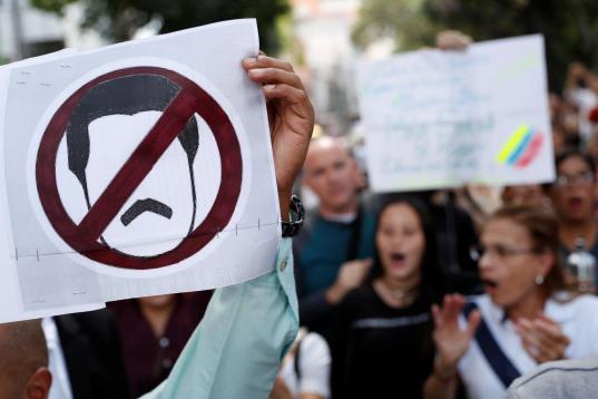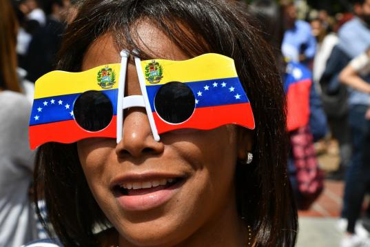 Opposition demonstrators take part in a protest against the government of President Nicolas Maduro, called by opposition leader and self-proclaimed 'acting president' Juan Guaido, at Altamira square in Caracas on January 30, 2019. - Venezuelan P...