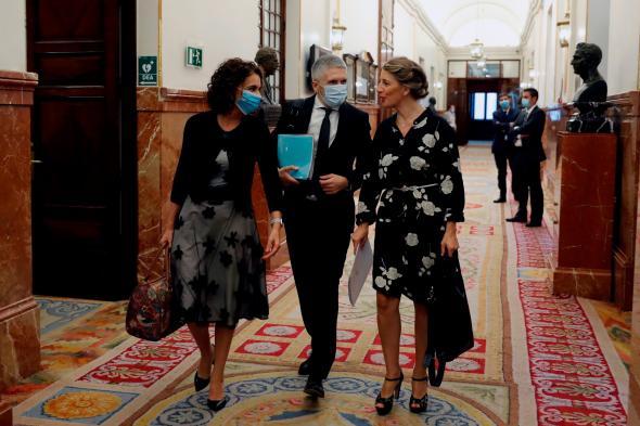 En el centro de la bancada del Gobierno esperaba mientras su turno Grande-Marlaska, que ha tenido que escuchar la petición de la oposición en persona: dimisión. Los ‘populares’ arrancaban sus cuatro turnos contra él con Teresa Jiménez Becerril, quien le afeaba el pacto con Bildu y el cese de De los Cobos. Marlaska respiraba y sacaba a colación que el PP siempre le pone portavoces con los que comparte muchas cosas, como esta diputada y Mari Mar Blanco, para que no entre en un duro cuerpo a cuerpo. En nombre de su hermano, la parlamentaria del PP decía que no iba a permitir que se destruya la Guardia Civil. Con otro argumento repetido por los tres partidos: la equiparación salarial de Policía y Guardia Civil aprobada este martes por el Consejo de Ministros se ha hecho para buscar el “silencio” de estos cuerpos.