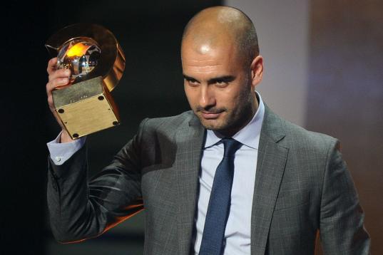 FC Barcelona's Spanish coach Josep Guardiola poses after receiving the FIFA Men's Football Coach of the year award during the FIFA ballon d'or ceremony on January 9, 2012 at the Kongresshaus in Zurich. AFP PHOTO / FRANCK FIFE (Photo credit sh...