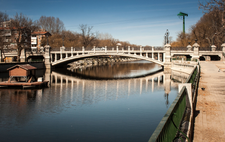 Río Manzanares. El río Manzanares que Goya dibujó y que hoy disfrutamos no es el Sena ni el Támesis, lo sabemos, pero recorre el sur de Madrid con un aire de “quiero y no puedo” que merece la pena reconocer. La alcaldesa Carmena ha abierto las compuertas y hoy fluye como deben fluir los ríos, humilde pero natural, acogiendo garzas y vegetación. En una de sus bellas presas herrerianas, la número 5, aparece muerta Saramú, la primera víctima de El sueño de la razón. No diremos más.