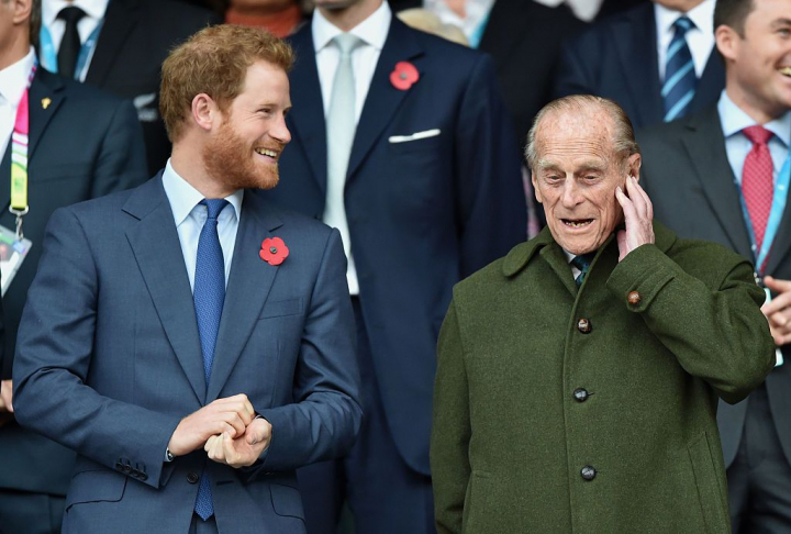 El príncipe Harry junto a su abuelo durante un partido de rugby en 2015.Max Mumby via Getty Images