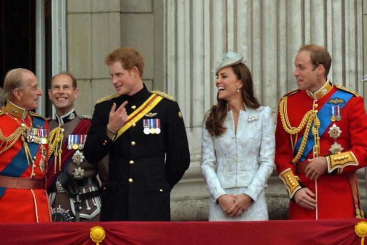 El príncipe Harry y los duques de Cambridge escuchan divertidos al dique de Edimburgo en un acto público.John Stillwell - PA Images via PA Images via Getty Images