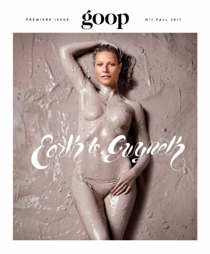 Llena de barro, semidesnuda y casi sin maquillaje. Así ha posado la actriz Gwyneth Paltrow para el primer número impreso de Goop, la revista que traslada al papel todo lo que Paltrow cuenta en su web homónima.