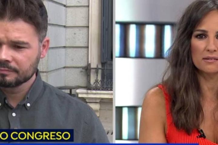 "¿Ha olvidado la reivindicación?": el corte de Rufián a esta presentadora cuando le ha preguntado por su "chapa amarilla"