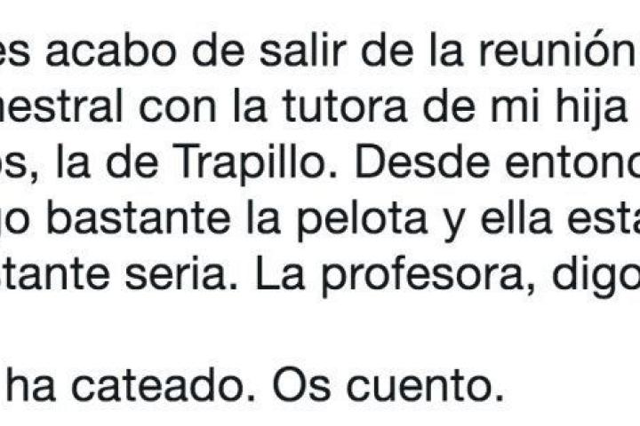 "Me ha cateado", comienza el relato del padre, que tiene ya más de 4.000 retuits y casi 8.000 'me gusta'.