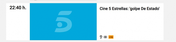 Hoy Telecinco anuncia su película de las 22,40 en cine 5 estrellas con el título de .... tachan tachan tachan !GOLPE DE ESTADO !! Que ! Como te quedas ? Esta es la de cojeme el cubata que lo vas a flipar .