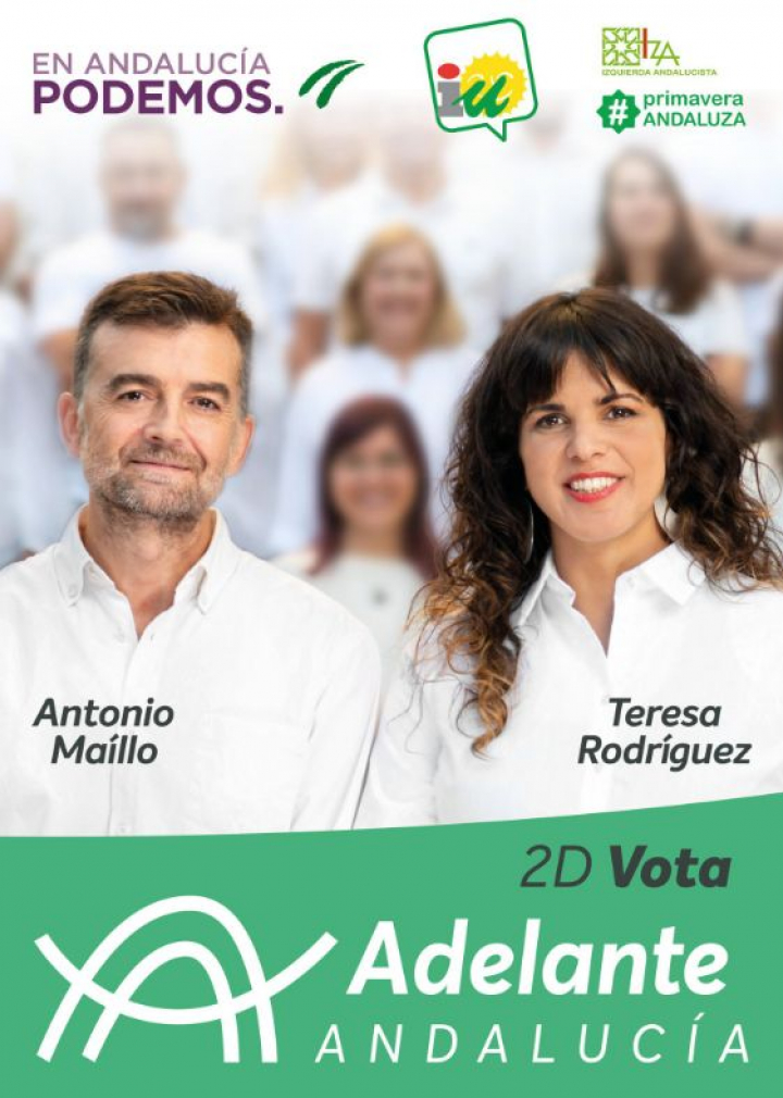 El cartel de Adelante Andalucía parece más bien el de una clínica dental. O una reunión de chefs. O el de una óptica. O que vienen del futuro a traerte lejía.